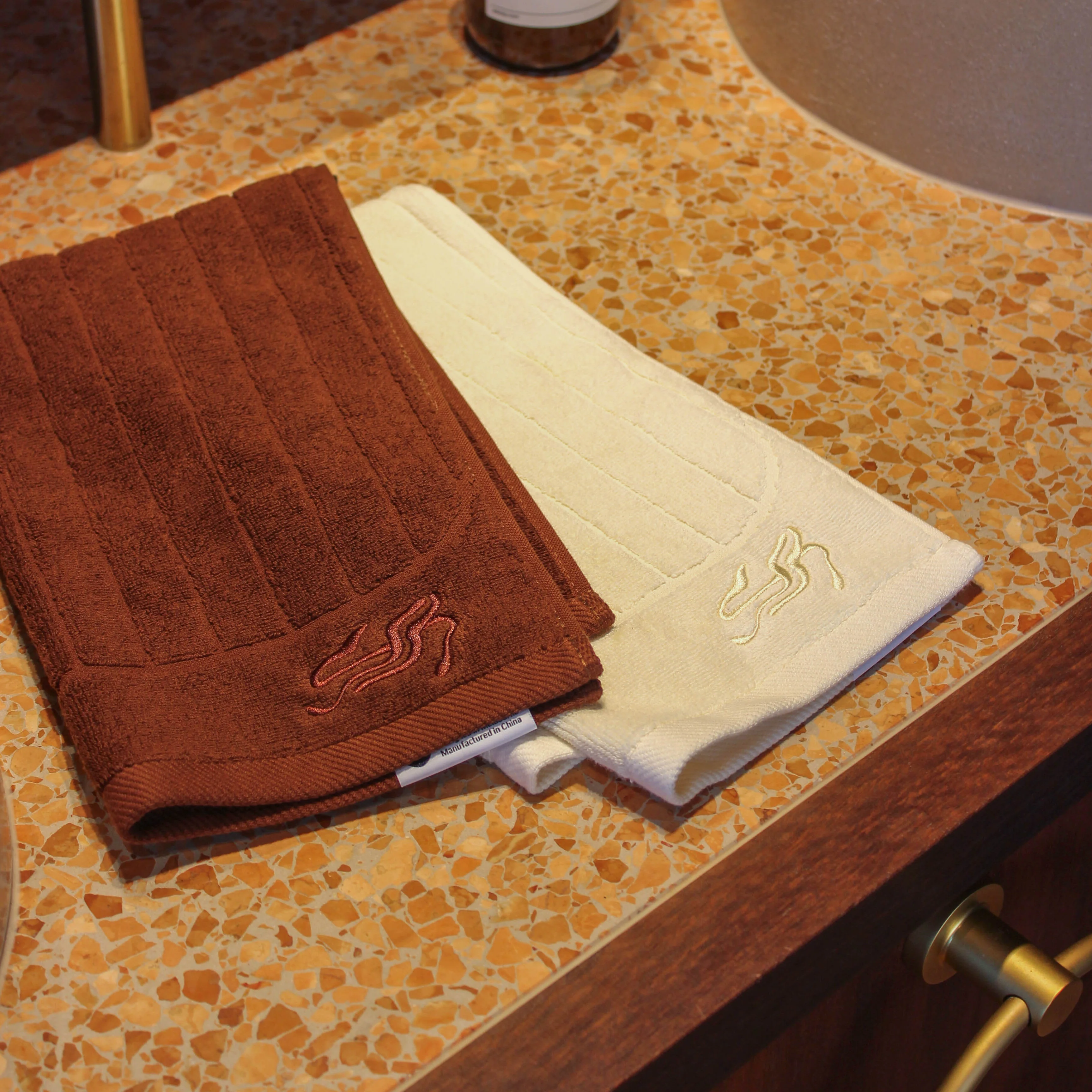 Our hand towels feature a custom pattern which has been specially designed in our Melbourne studio to increase absorption and drying time. These signature lines catch and drag in water when wiping along the body and in addition space out the fabric to allow increased airflow for faster drying time - Keeping your towels fresher for longer.